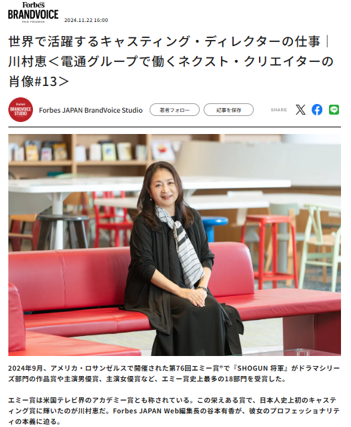 2025.02.17 PressRelease 「Forbes JAPAN」にてエミー賞®キャスティング賞受賞の川村恵のインタビューが掲載されました