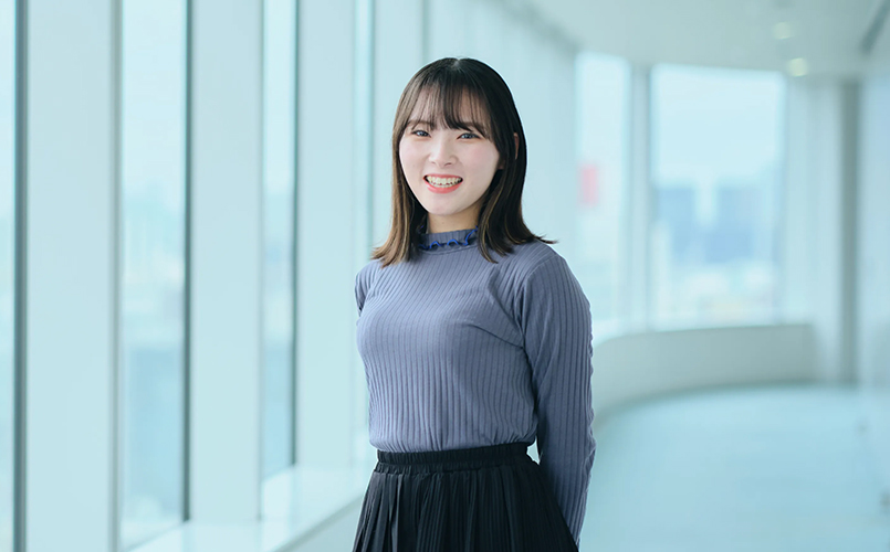小学生の頃からテレビドラマやバラエティ番組を見ることが大好きで、大学では広告やメディア全般について学んでいました。しかし、就職活動の際は航空業界やホテル業界などの接客業を志望していたのですが、コロナ禍での就職活動だったため、その影響で接客業の採用が少なく断念してしまいました。進路先を模索していた時に、偶然目にしたDCEの採用ページに載っていた「タレントと関わる仕事」という言葉に惹かれました。でも、「私が電通グループの会社に受かるわけがない…」と、春採用は受けずに見送ってしまったのですが、心残りとなり、秋採用を受け、採用していただくことができました。就職活動をする中で、もし興味がある企業を見つけたなら、ぜひ機会を逃すことなく挑戦してほしいと思います。